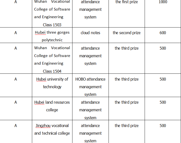 The graph shows that the students of Wuhan vocational college of software and engineering receive the first prize of Group A as freshman winners.